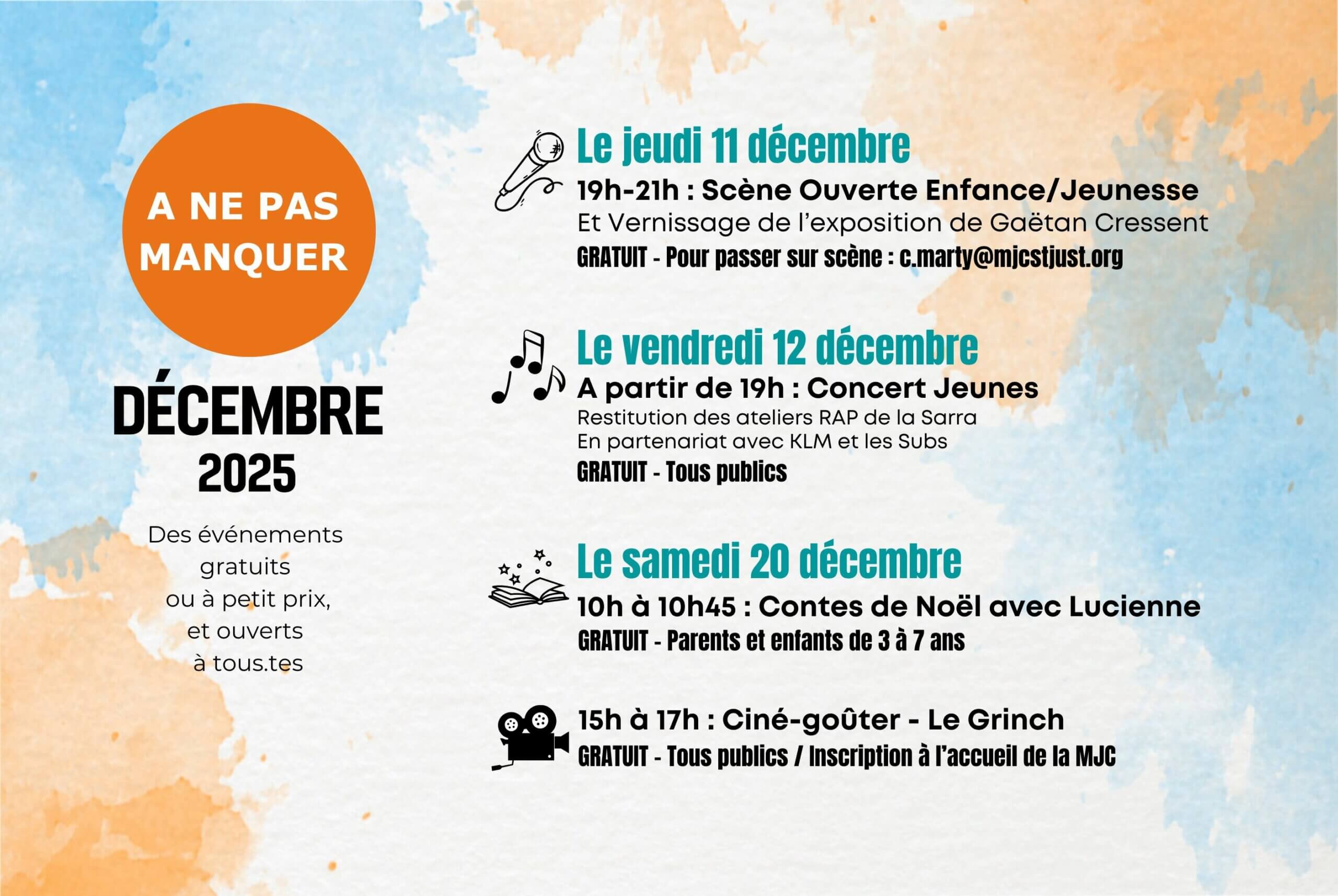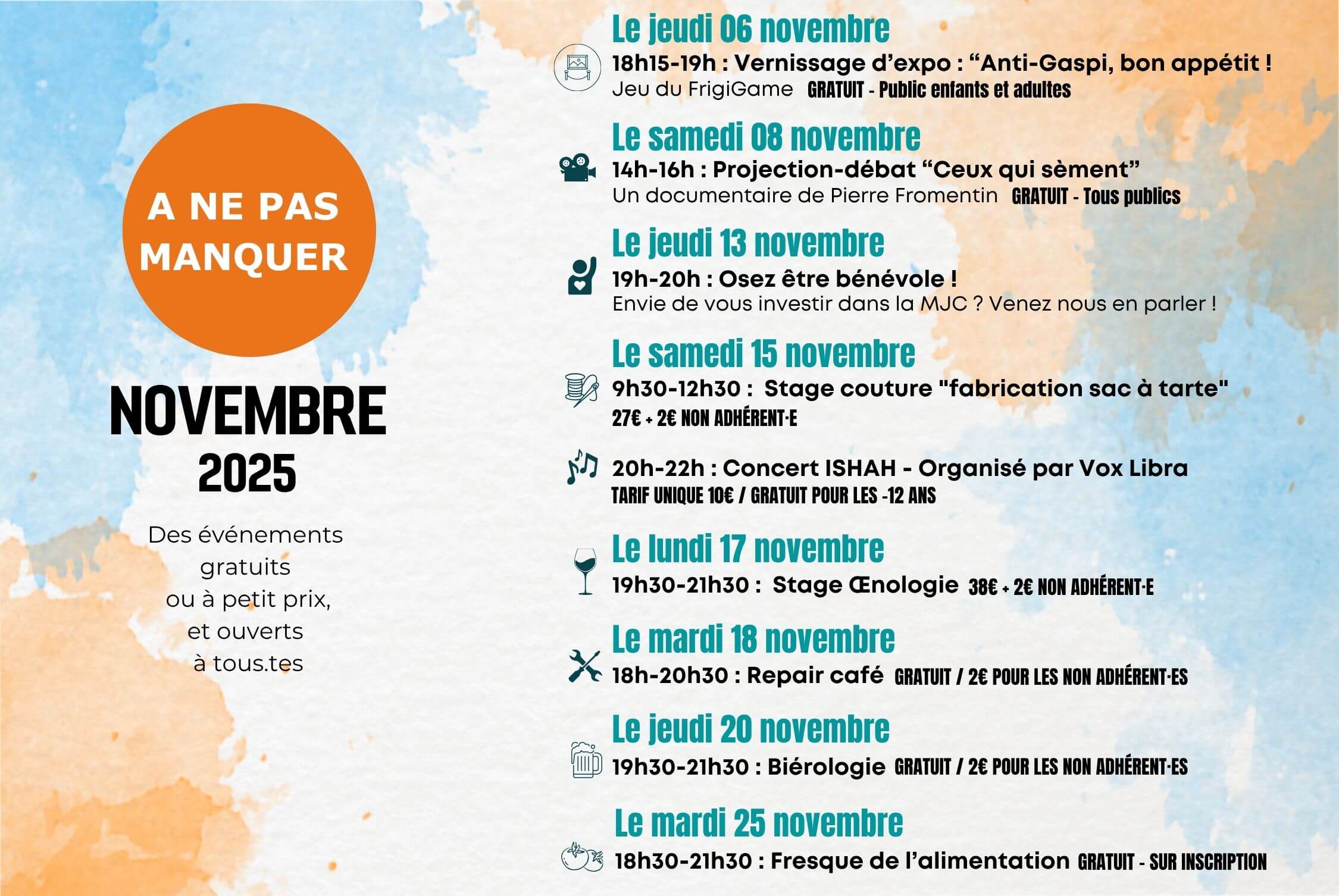 La saison est rythmée par 3 thématiques, qui ont été choisies par les administrateurs de la MJC. Les bénévoles des multiples commissions et salariés de la MJC s’en saisissent pour créer des animations ludiques et culturelles.