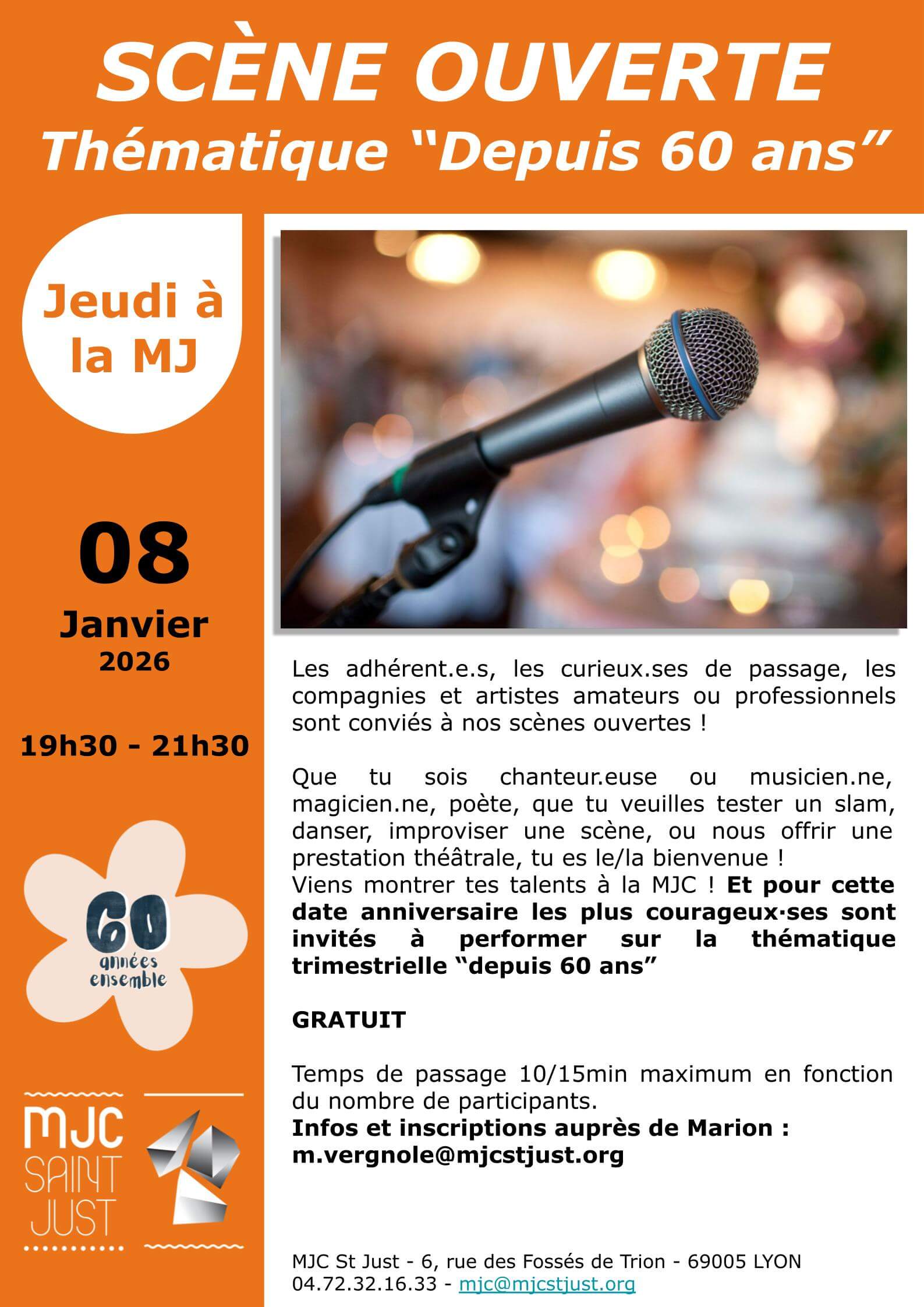 Viens montrer tes talents à la MJC ! Et pour cette date anniversaire les plus courageux·ses sont invités à performer sur la thématique trimestrielle “depuis 60 ans”