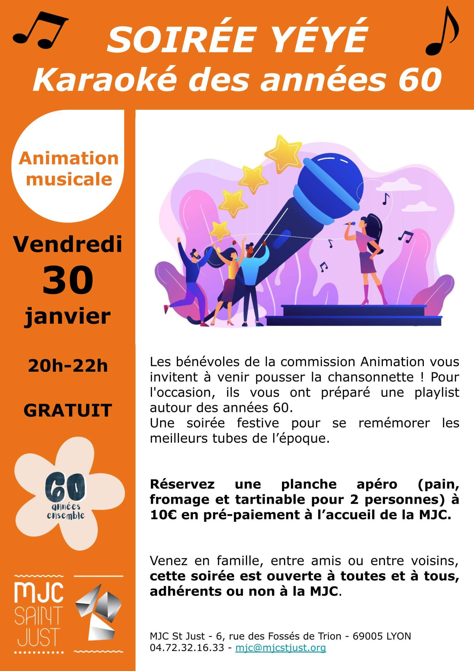 Soirée Yéyé : Karaoké des années 60 - Vendredi 30 janvier - 20h à 22h - Animation