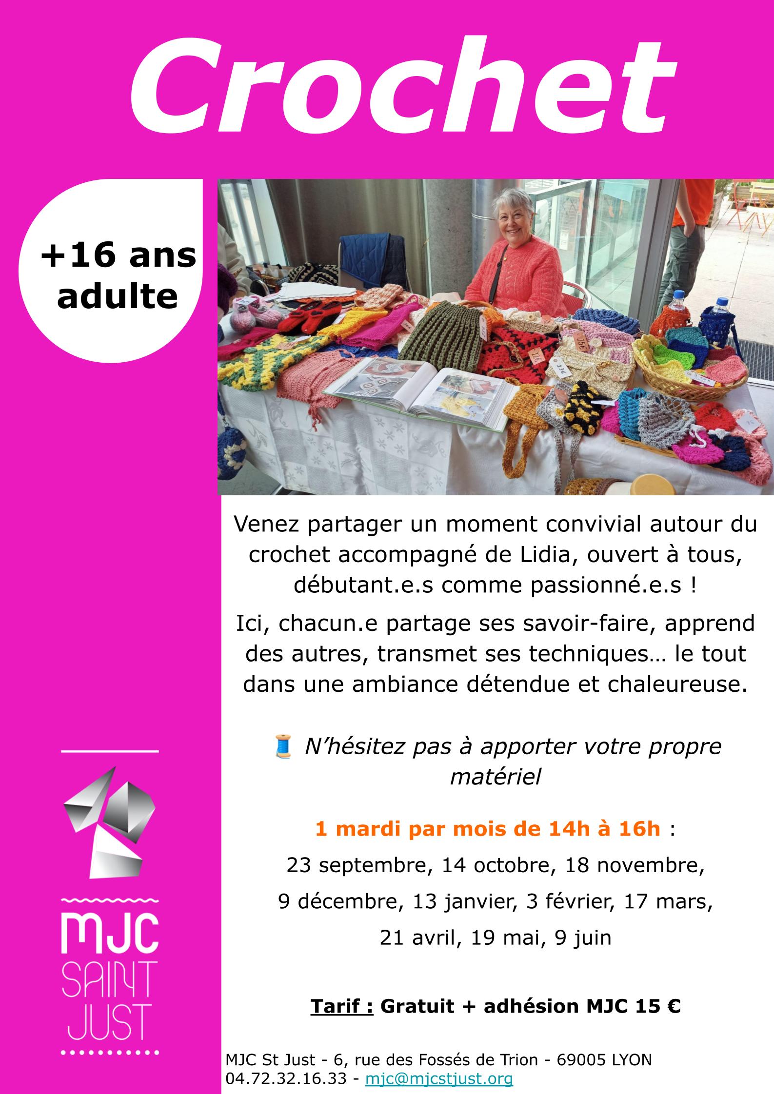 Venez partager un moment convivial autour du crochet accompagné de Lidia, ouvert à tous. Ici, chacun.e partage ses savoir-faire, apprend des autres, transmets ses techniques…le tout dans une ambiance détendue et chaleureuse.