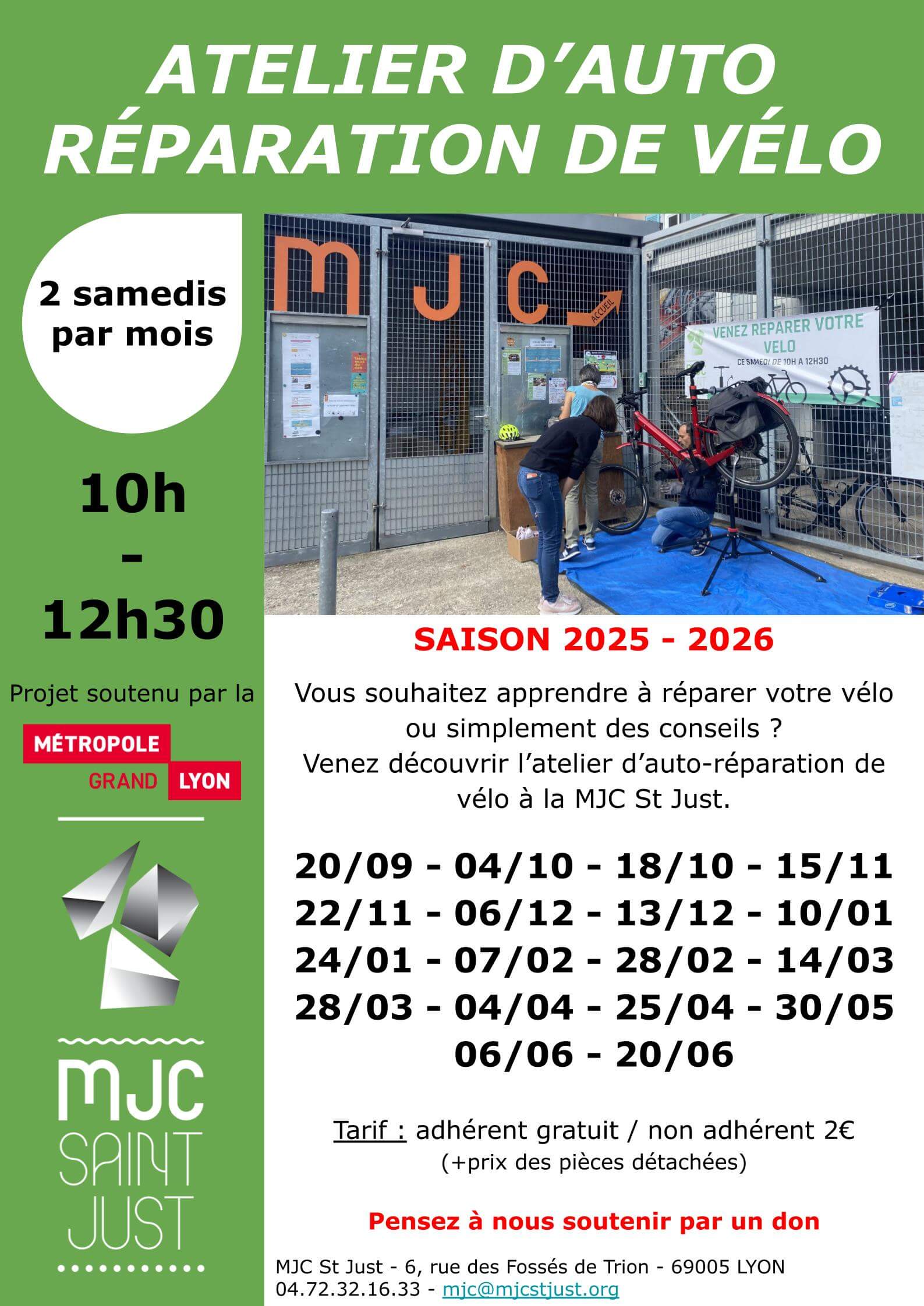 Atelier d'auto réparation de vélo - Samedis 15 et 22 novembre - 10h à 12h30 - Atelier