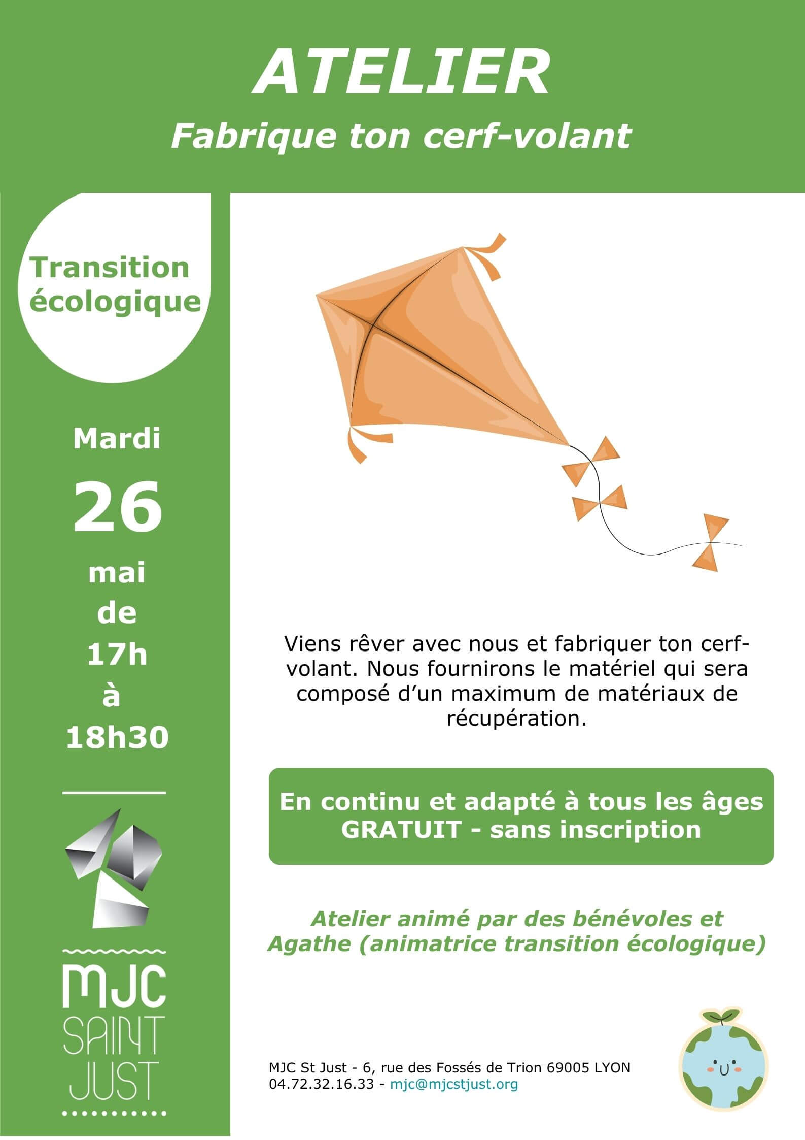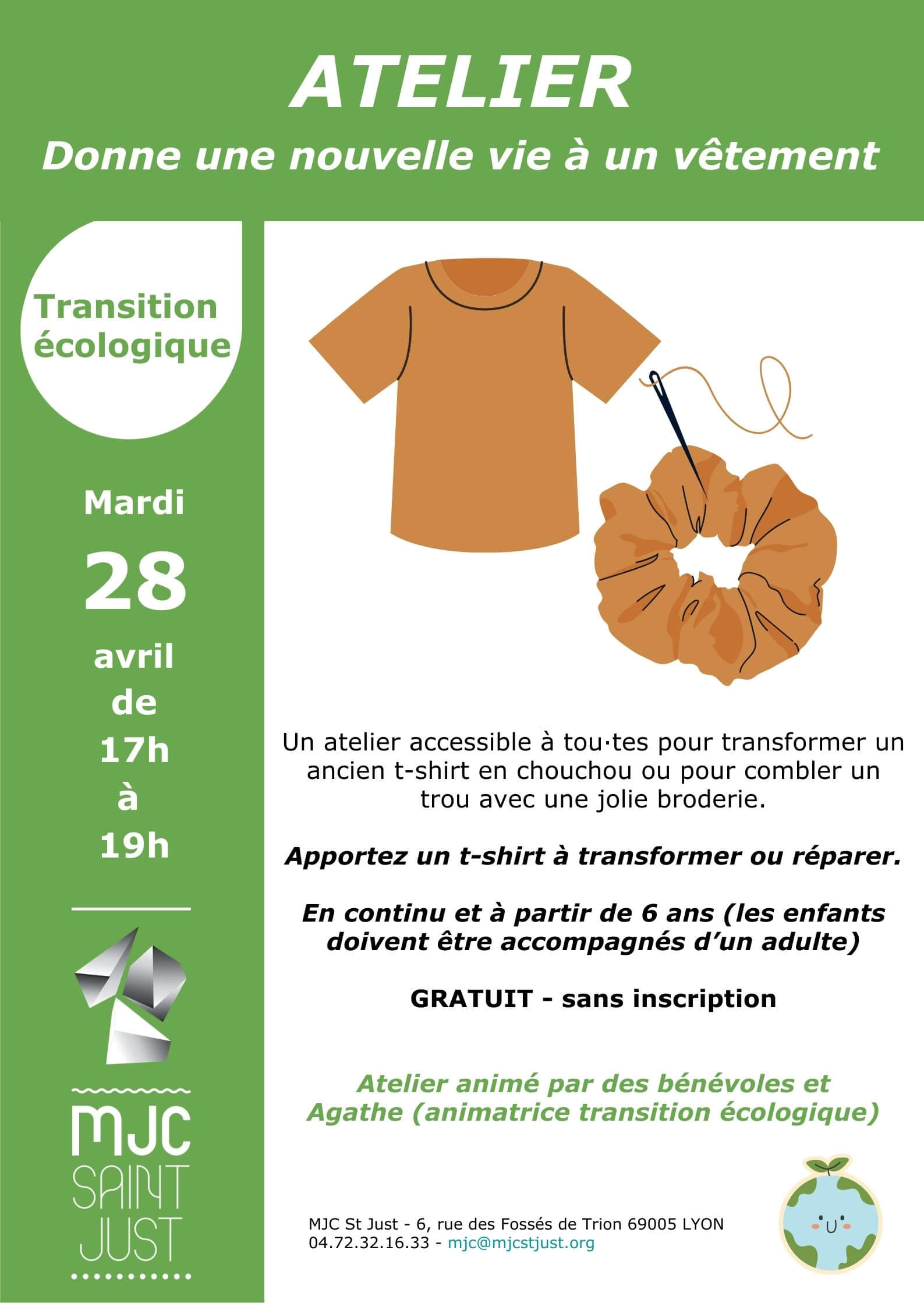 La MJC s’engage dans une transition écologique ambitieuse pour bâtir un avenir plus durable. À travers des actions concrètes, des ateliers participatifs et des partenariats locaux, notre objectif est de sensibiliser, mobiliser et agir pour réduire notre impact environnemental tout en renforçant les liens sociaux.
